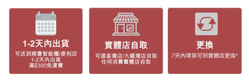 - 訂單會3天內到達店舖,客人由收到電郵表示貨已到門市後3天內到達門市自取,逾期將會收取存倉費港幣 50元/天。